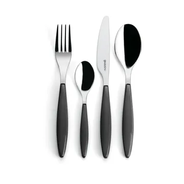 GuzziniのFeeling カトラリーセットは、6人分24点入りのバランス良い使い心地が魅力のカトラリーセットです。Robin Levienによるデザインで、18/10ステンレスと人間工学的な樹脂ハンドルを組み合わせ、日常から特別な席まで快適に使えます。ナイフは鋭い切れ味を実現し、すべて食洗機対応。イタリア製の高品質で、ギフトボックス入りの実用的かつエレガントなセットです。