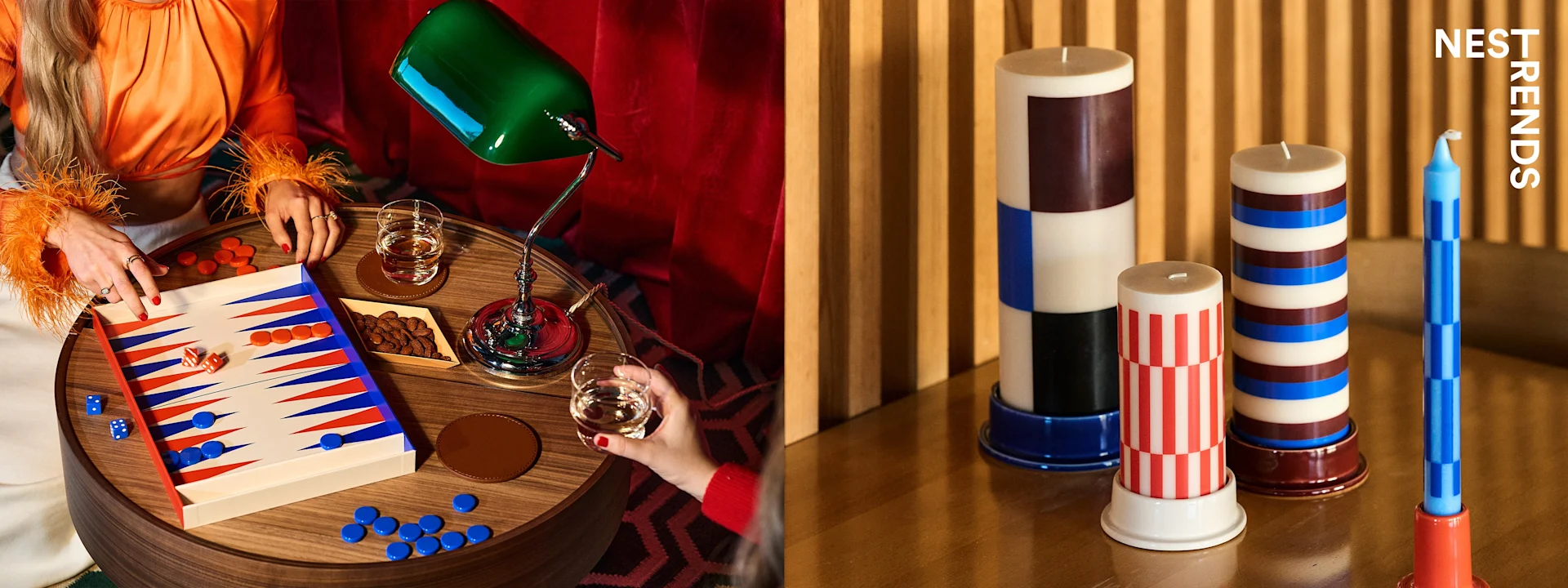 このトレンドは特にコントラストが重要な要素ですが、特にレッドとブルーをインテリアに取り込むと良いでしょう。リップスティックのようなレッドの色合いにコバルトブルーやクラインブルーを用いると、ドラマチックなインテリアになります。サンドカラーやベージュといった調和の取れたベースに、カラフルなアクセントを自由に合わせましょう。