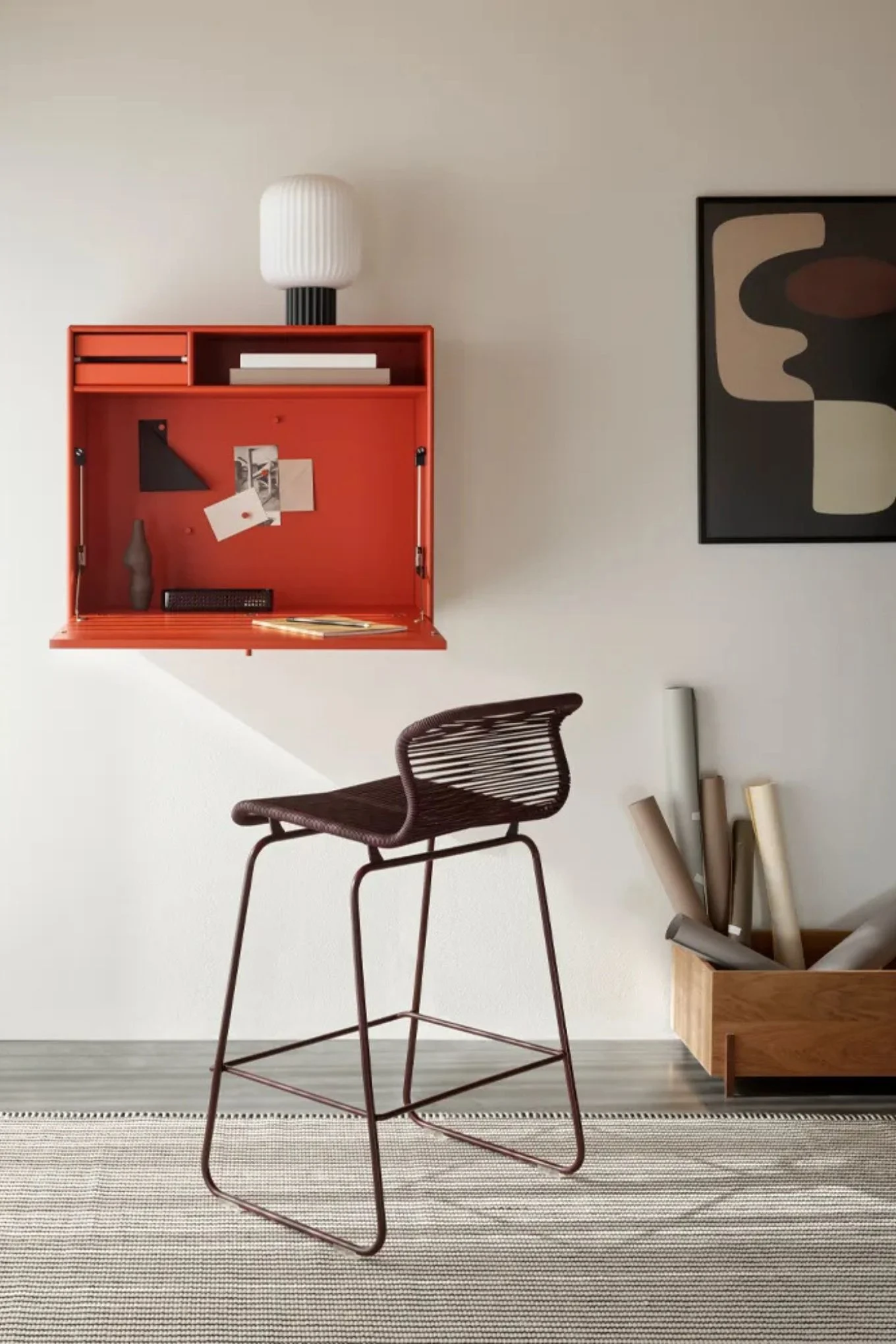 シェルフとしてもマルチに活躍する、Montanaの壁掛けStudioデスク。